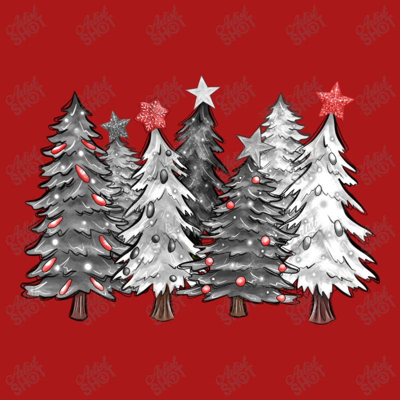 Digital printing is an amazing process that involves your artwork “Black And White Christmas Trees With Lights” being processed by a computer and then printed directly onto the surface of your product. Digital printing is not a heat transfer or applique, as the ink directly adheres to the fabric of your shirt. Each printing process has its strengths, and our artwork team will weigh these when deciding which to use for your art.